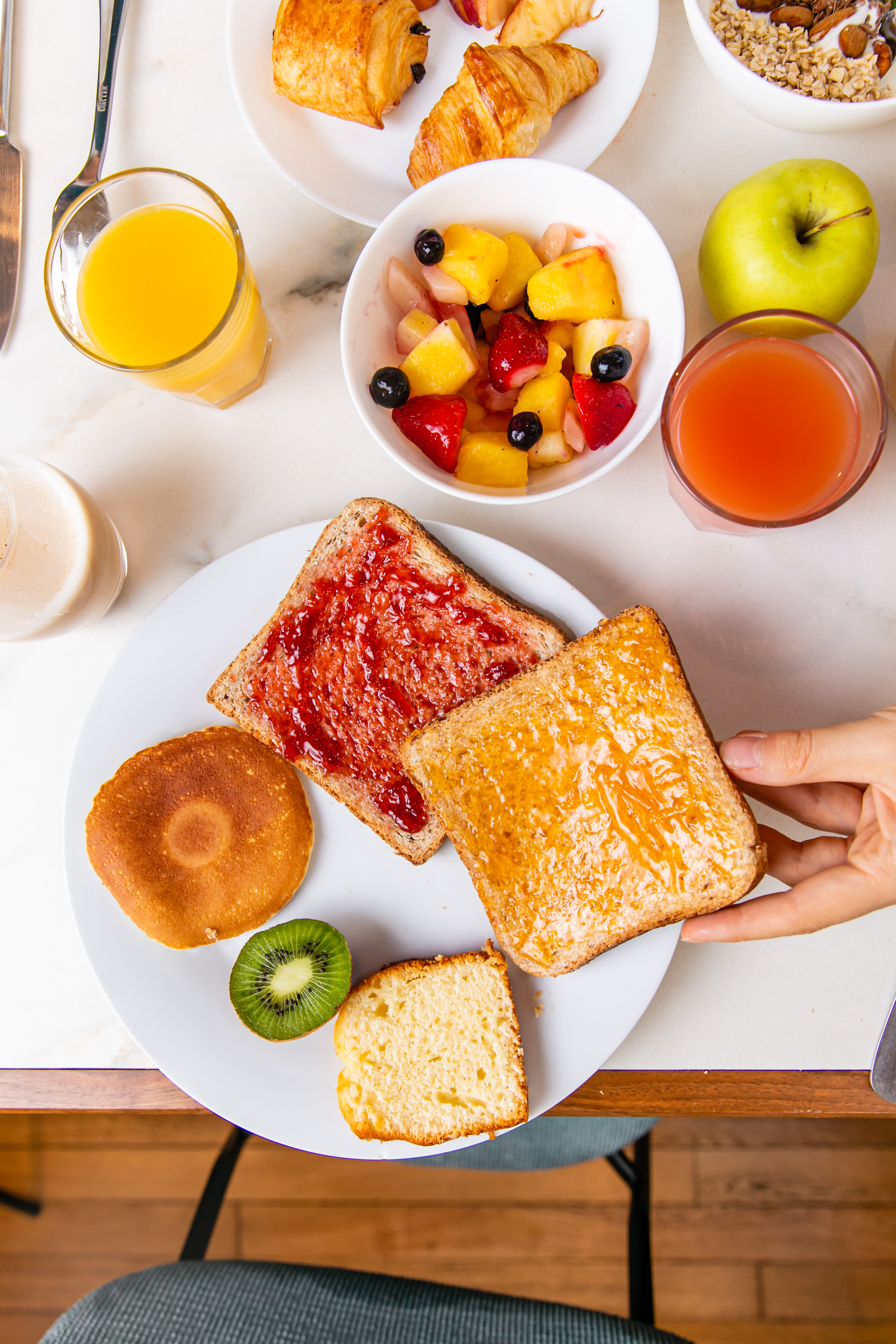 Commencez votre journée du bon pied avec notre petit-déjeuner buffet ! Nous vous proposons des viennoiseries fraîches, cuites sur place, ainsi qu'une sélection de produits faits maison par nos équipes passionnées. Notre engagement envers la qualité se reflète dans chaque produit, avec une sélection de produits français, bio et de circuit court.